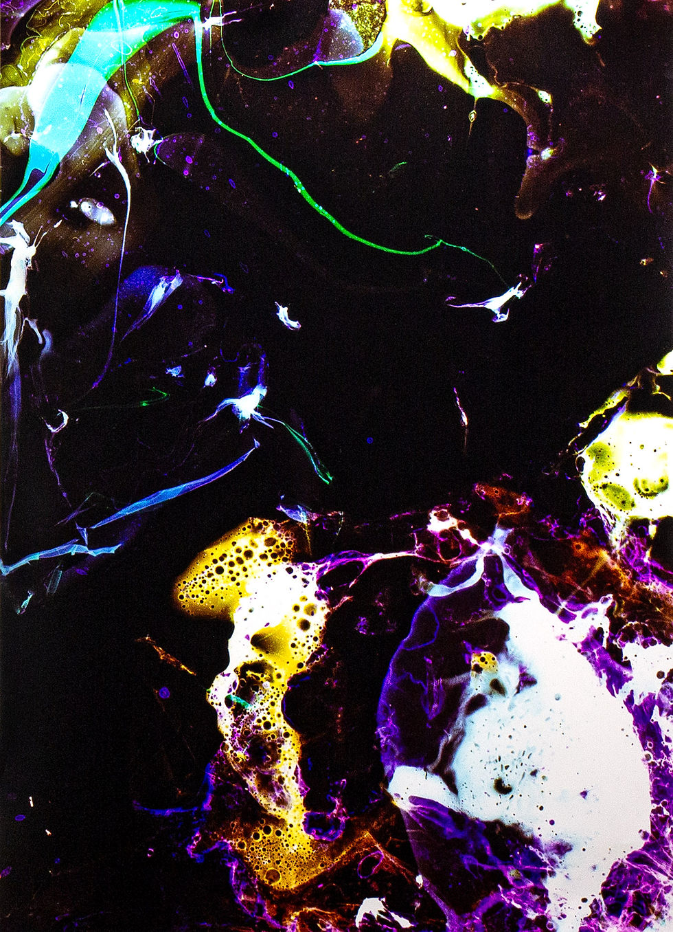 Kristina Žetko’s contributions to contemporary art comes from advancing the purpose of two-dimensional abstraction beyond digital means or through painting. Her unfamiliar surfaces look thoroughly photographic in sheen and elasticity but unfamiliar in configurations which appear like chaotic realms from an other-worldly dimension. The consistent analogue process reveals not only ingenuity, but also a clean, polished surface without the artificiality of digital automation. Besides fantastical galaxies and far off dimensions, these compositions bloom and blast in a similar manner to electricity or how neurons in the brain reflect a ‘spark’ of life within human biology. The biological and celestial appearance of these abstract analogue photographic compositions reveal a rare complexity to abstraction only achieved through comprehensive experimental processes which she has concocted like a mad scientist in the laboratory. An alchemical reactionary concoction and brew which creates a chemistry of rich stimulating surfaces which the viewer can lose themselves in for hours at a time.